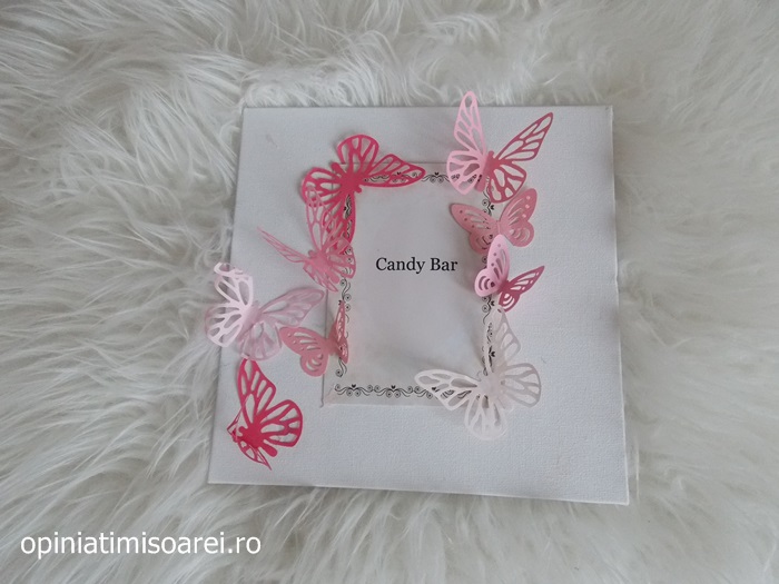 “La nunta ei m-am ocupat de candy bar (unde am avut decoratiuni realizate cu tehnica servetelului si origami). De unele obiecte care au facut parte din aranjamentul meselor (marturii, diverse decoratiuni realizate cu tehnica servetelului si alte obiecte pe care mirii si le-au dorit, a fost o lista destul de lunga) . Apoi m-am bucurat de reactia oamenilor, pentru ca am fost si printre invitati“, spune incantata Diana.
