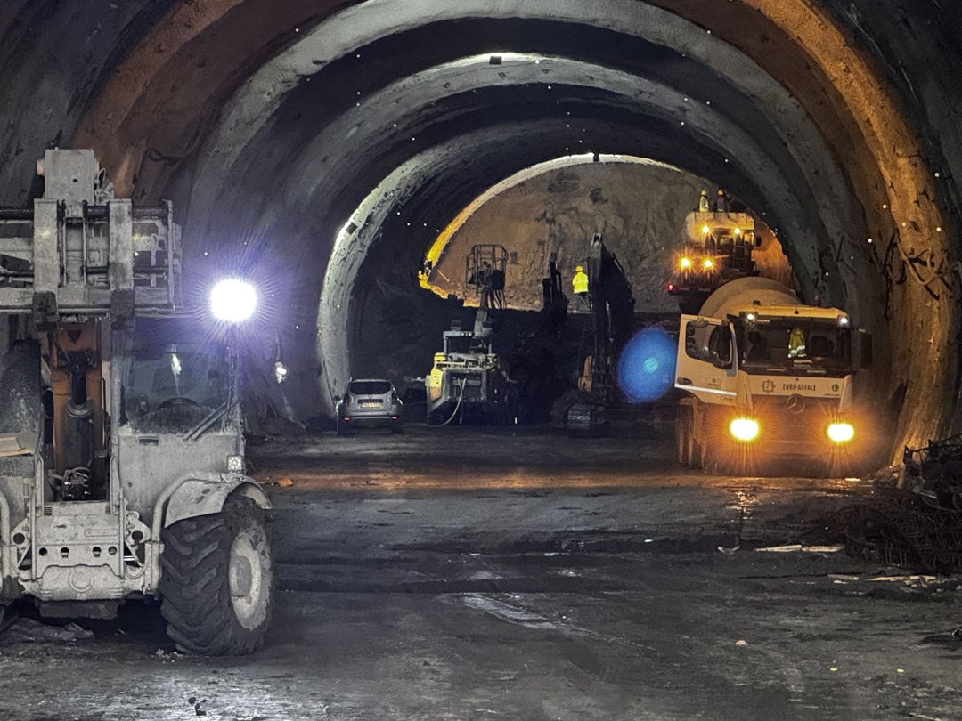 Activitatea este susținută în toate galeriile celor două tuneluri de pe traseu. La primul tunel, unde anul acesta au fost străpunse ambele galerii, se lucrează la aplicarea hidroizolației și montarea armăturii pe boltă pentru galeria 2, respectiv se execută lucrările pregătitoare pentru aplicarea hidroizolației și montarea eșafodajului de lucru pentru galeria 1. De asemenea, tot în galeria 1 se execută lucrări de armare, cofrare, betonare radier și banchine.