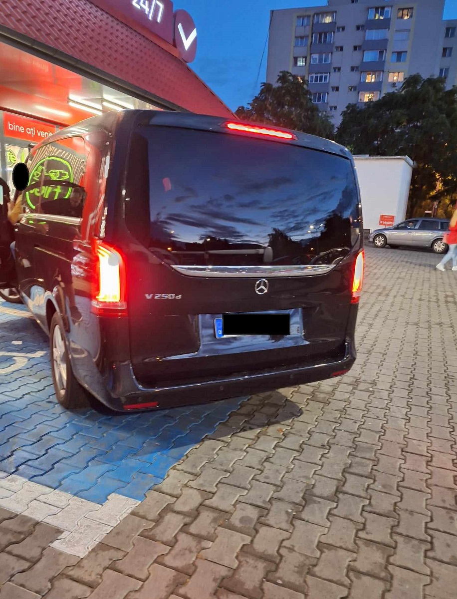 Soferul si-a parcat masina chiar pe locurile destinate persoanelor cu handicap, aflate in fata intrarii in supermarket.