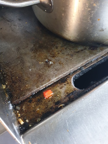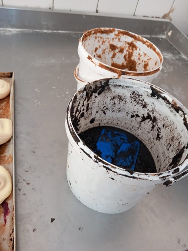 -uleiul pentru gătit înnegrit de arsură, cu resturi alimentare