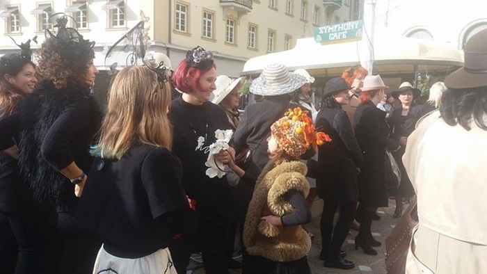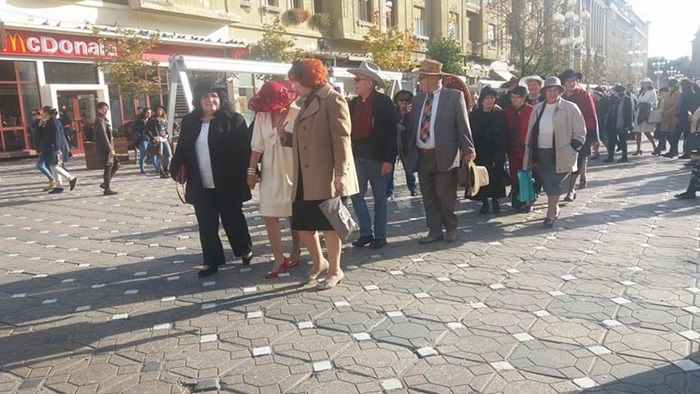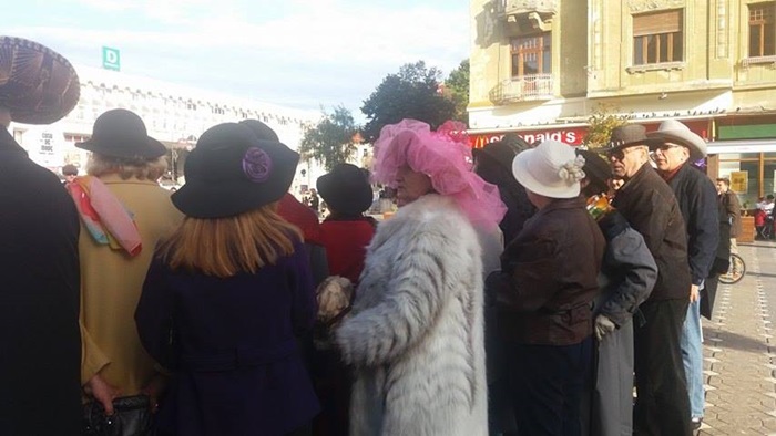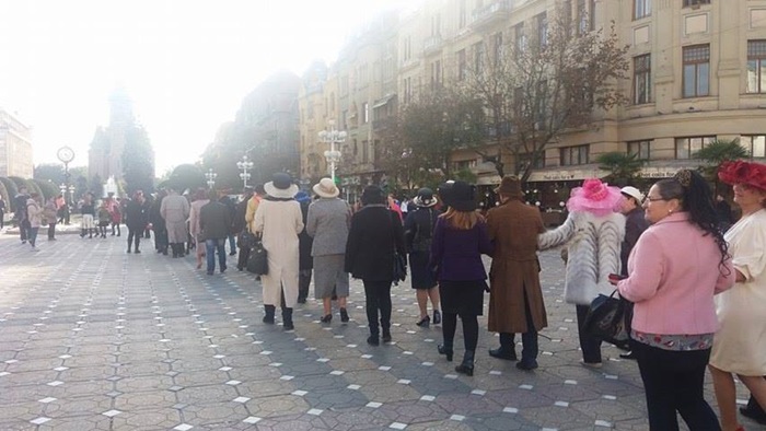 Dupa ce si-au prezentat accesoriile, fara de care altadata nu ieseau din casa, cele aproximativ 30 de doamne au pornit intr-o parada prin Piata Victoriei. Iar dupa scurta plimbare prin centru, doamnele au fost invitate la vals, pe platoul din fata Operei. Apoi, au fost premiate cele mai originale palarii ale doamnelor, dar si ale domnilor.