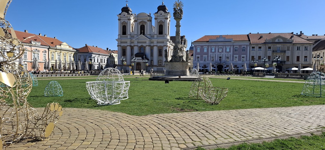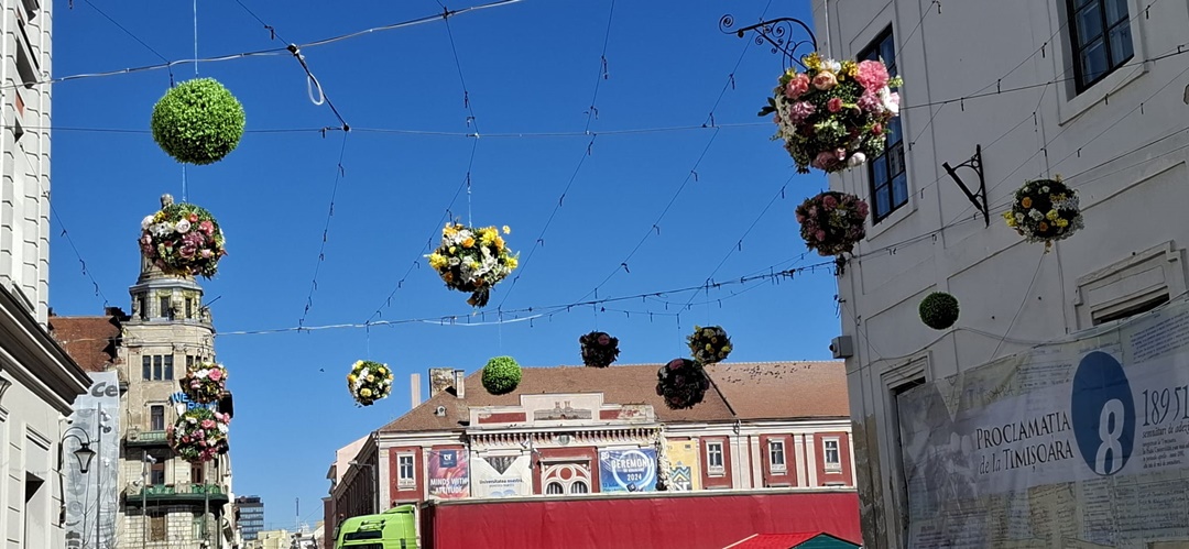 În Piata Victoriei, în apropierea Catedralei Mitropolitane, au fost puse flori pe însemnul “I love Timișoara”, angajații Horticultura smulg buruienile din spatiile verzi, iar cei de la Aquatim intervin la Fântâna cu Pești.