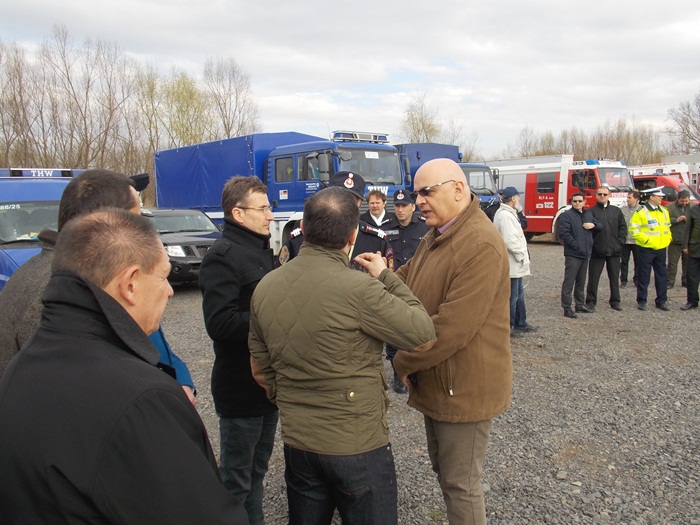 TIMISOARA. Cel mai complex exercitiu pus la cale de pompierii din Timis alaturi de colegi din alte trei tari europene l-a adus la Timisoara si pe secretarul de stat din Ministerul Afacerilor Interne, Raed Arafat. Acesta a vizitat baza de comanda de la Ghiroda, dar a mers si la Uzina de Apa unde au fost puse in functiune pompe de mare putere.