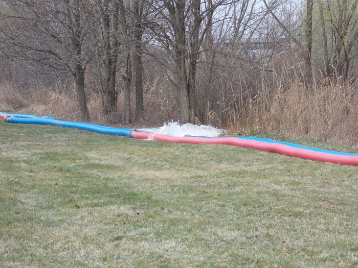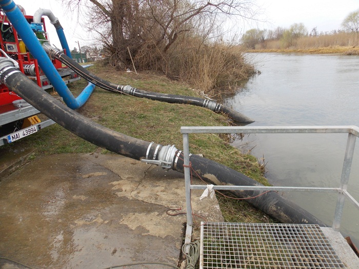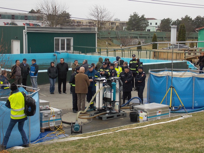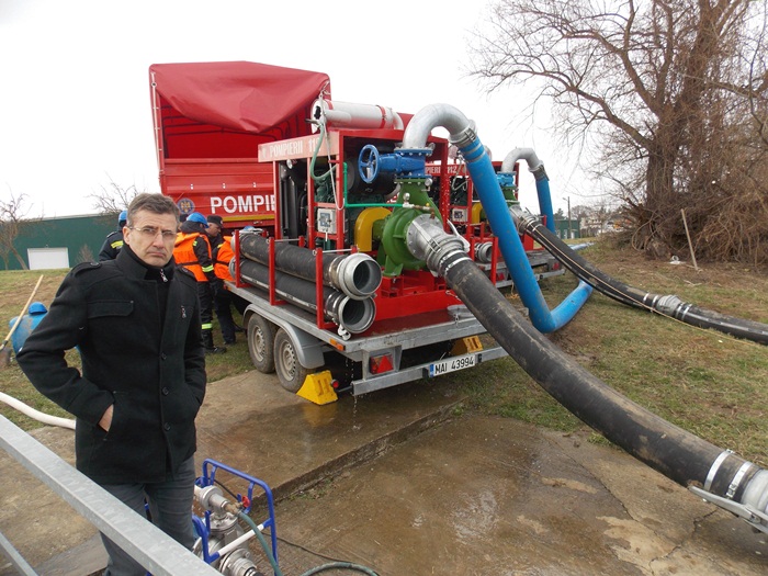 La Uzina de apa au fost puse in functiune pompe de mare putere pentru evacuarea apei, iar in timpul vizitei lui Raed Arafar unul dintre furtunuri s-a desprins, problema fiind rezolvata insa iute de pompieri.