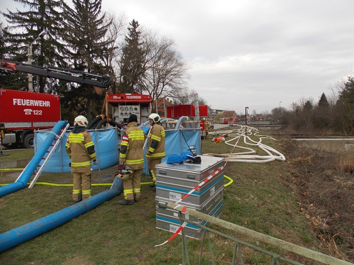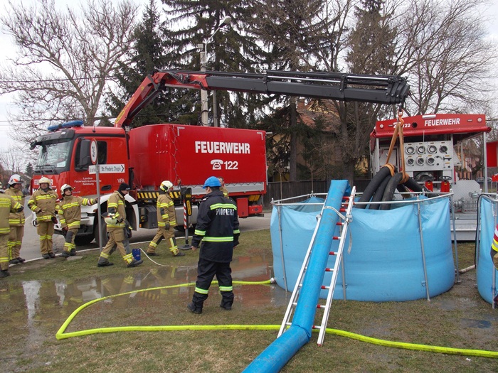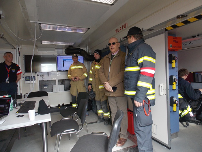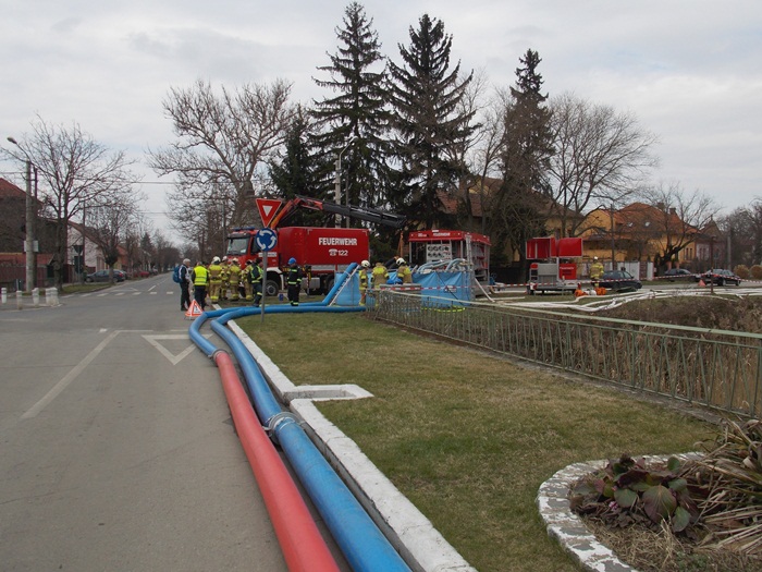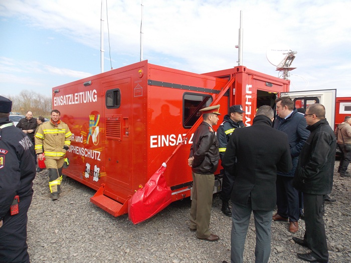 Echipa din Austria a adus la Timisoara doua pompe de capacitate mare si alte cinci de capacitate mai mica, 67 de oameni si 20 de masini, dar a instalat si o bucatarie care poate asigura hrana pentru 5000 de persoane pe zi, timp de aproape 7 zile. Centrul de comanda este localizat intr-un container care se extinde.