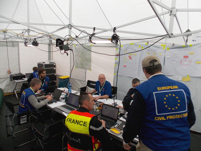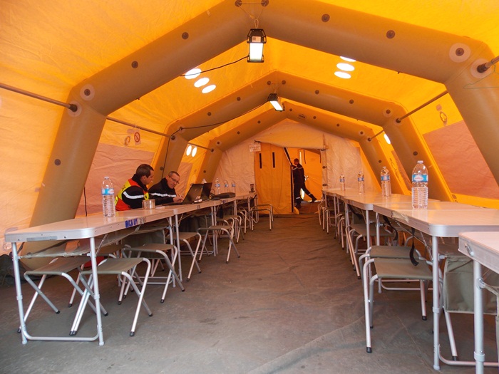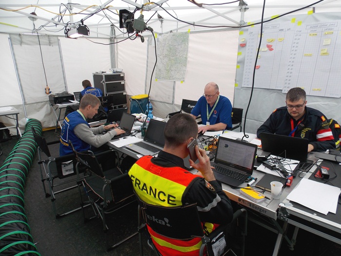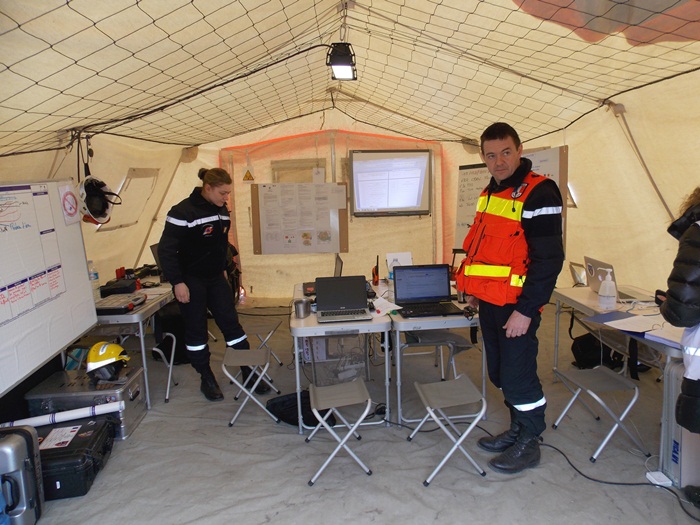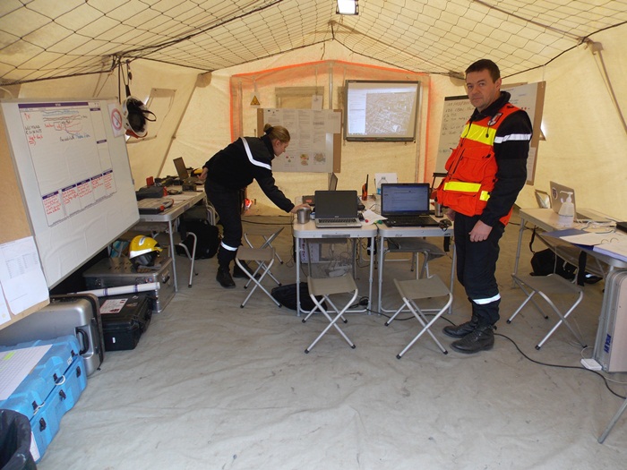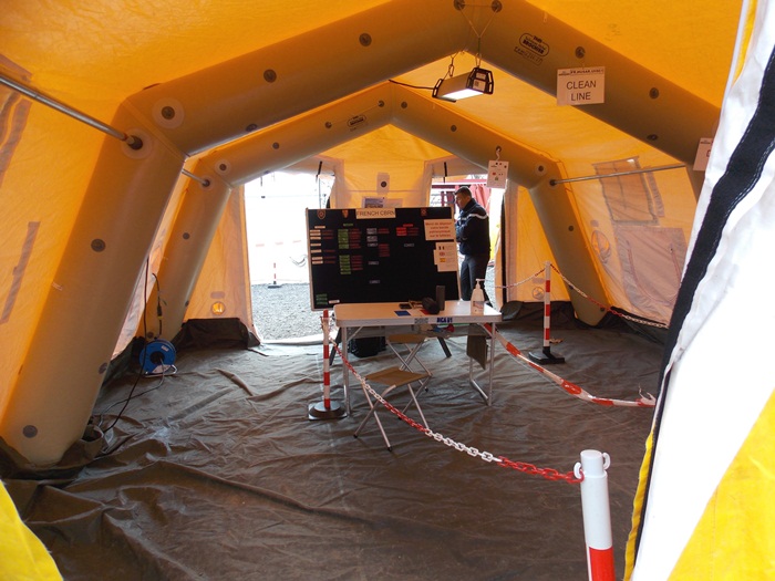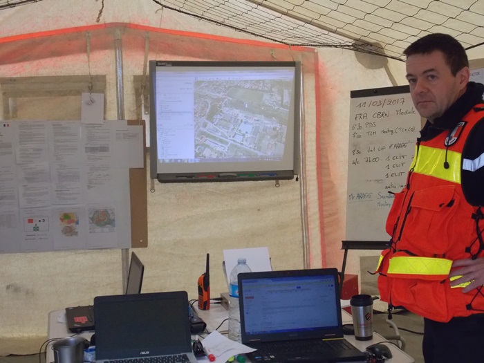 Franta a adus la Timisoara o echipa de interventie impotriva pericolelor chimice sau biologice care a si facut o prima demonstratie joi seara. In tabara franceza sunt asezate pe langa un post de comanda dusuri pentru decontaminare, toalete si un cort pentru spalarea mainilor, iar fiecare dintre cei care intra in tabara trebuie sa isi lase numele pe o tablita, iar cand ies isi iau ecusonul.
