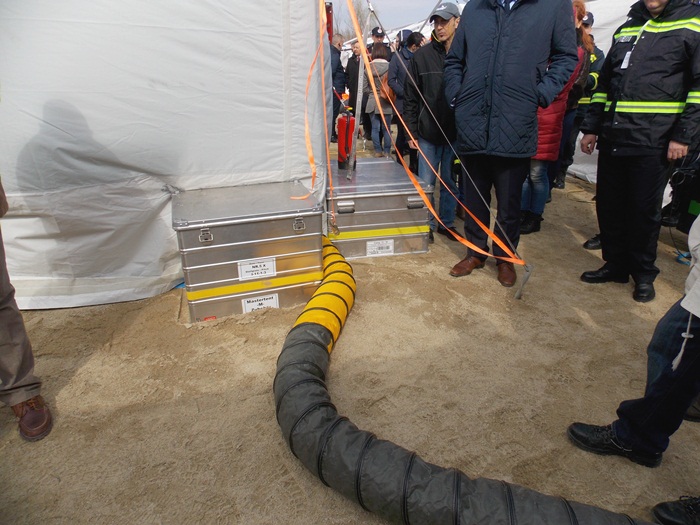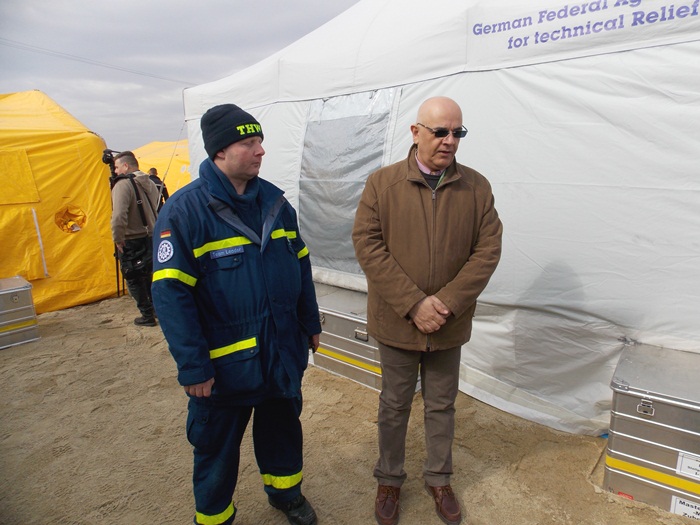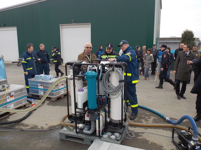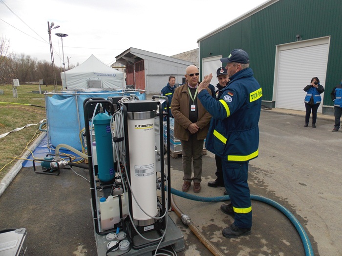 Echipa germana a adus la Timisoara un echipaj de purificare a apei. Cu echipamentele transportate in Banat, nemtii pot purifica 5000 de litri de apa pe ora, pe care sa o livreze oamenilor care au nevoie de apa curata in caz de dezastru. Echipamentul de purificare al apei a fost instalat in zona Uzinei de Apa.