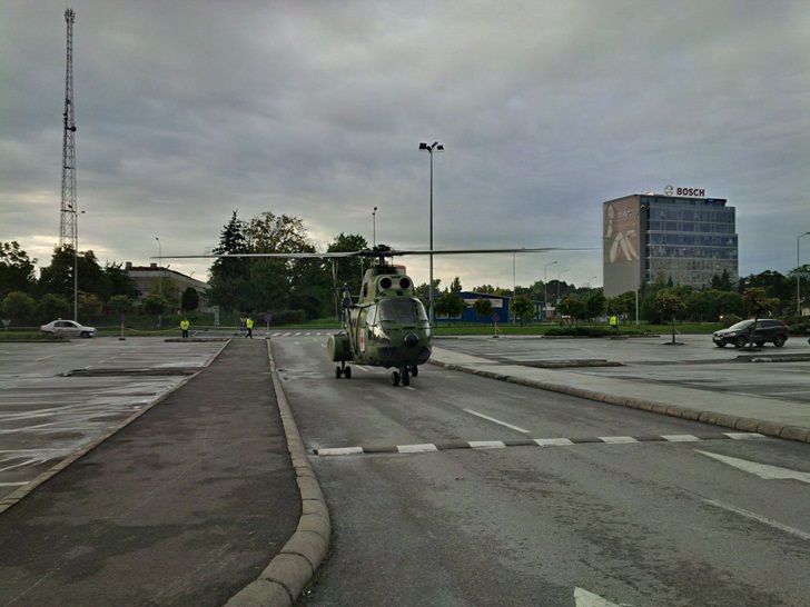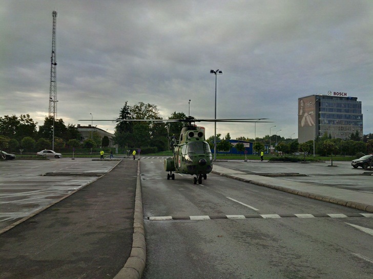 TIMISOARA. Moment surpriza la Iulius Mall Timisoara duminica dimineata! In parcarea centrului comercial a aterizat un elicopter IAR 330 H al Armatei.