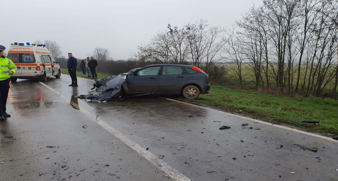 TIMISOARA. Groaznic accident pe soseaua Timisoara – Buzias, joi dupa-amiaza. Un sofer a murit, iar sotia lui a ramas captiva in autoturismul cuprins de flacari, dupa ce acesta a fost izbit de un conducator auto care a intrat pe contrasens.