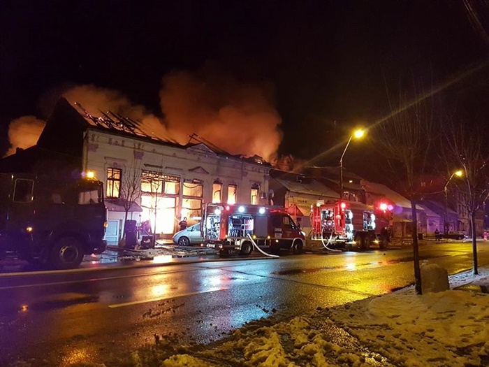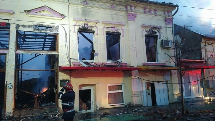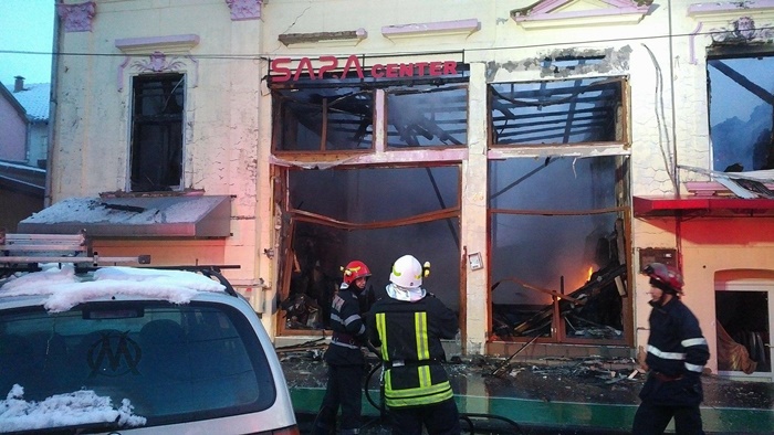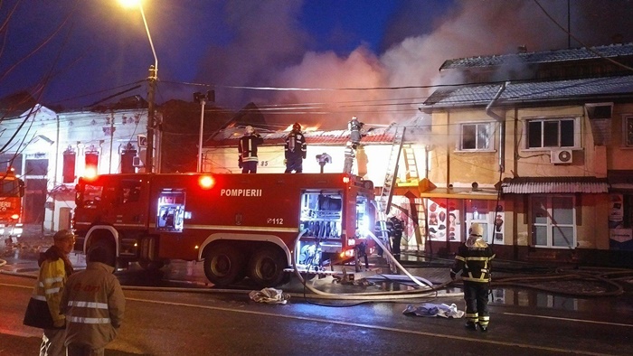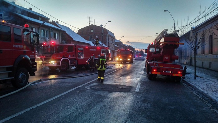 O cladire ce adaposteste pravalii a ars complet, din ea ramanand doar zidurile, iar flacarile care au cuprins-o si pe cea invecinata au distrus-o si pe aceea.