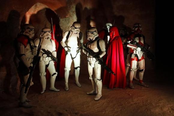 People dressed up as characters from the Star Wars movies take part in a parade during a tourism event in the Star Wars movie set at Ong Jmal, in Nefta May 3, 2014. REUTERS/Zoubeir Souissi