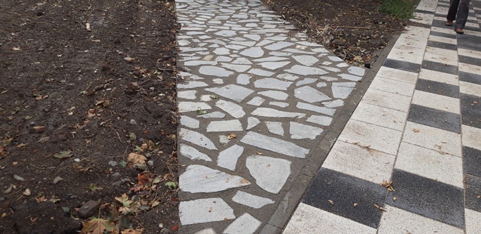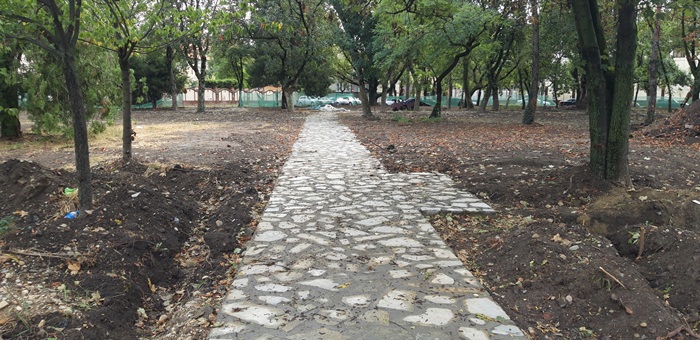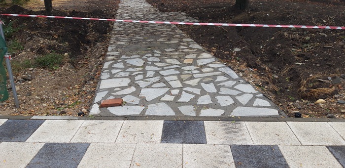 Dupa ce mult timp muncitorii au cam lipsit din teren, in zona parcului cuprins intre Posta Mare si Michelangelo se amenajeaza aleile. Acestea sunt de tip mozaic, in contrast puternic cu faimoasele trotuare sotron care marginesc deja de mai mult timp spatiul verde.