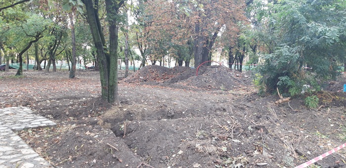 Cat priveste zona dintre copaci, deocamdata pot fi admirate santuri si mormane de pamant, aceasta dupa ce luni de zile s-a… lucrat la toaletarea arborilor.