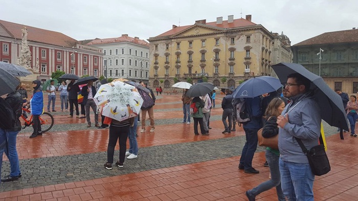 TIMISOARA. Au ignorat ploaia si au venit in centrul orasului pentru a protesta din nou impotriva Guvernului si a lui Liviu Dragnea, liderul PSD si presedintele Camerei Deputatilor.