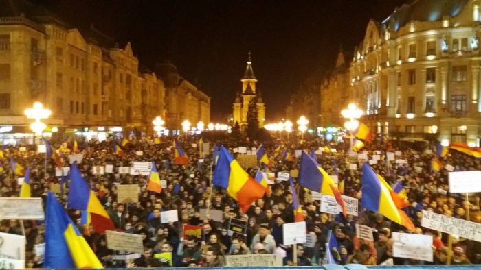 UPDATE: Numarul protestatarilor din Piata Operei din Timisoara a ajuns la 30.000.