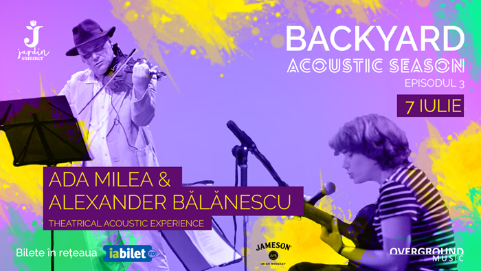 TIMISOARA. Dupa doua concerte acustice de exceptie, sustinute de Luna amara si Implant Pentru Refuz, Jardin este gata sa ii gazduiasca pe Ada Milea & Alexander Balanescu, vineri, 7 iulie, intr-un show teatral de exceptie, in cadrul seriei Backyard Acoustic Season.