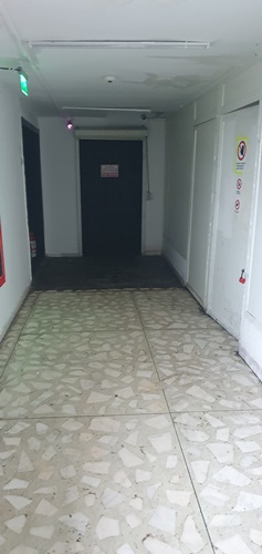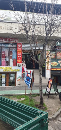 Ajunși la fața locului, am început să căutăm, printre dughene cu shaorma și produse de îmbrăcăminte, sediul social al firmei IT angajate de Spitalul Orășenesc Deta.