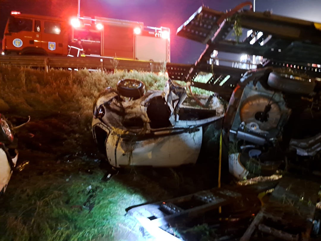 Interventie a pompierilor si a unui echipaj SMURD, dupa un accident grav petrecut pe Autostrada Vestului in noaptea de duminica spre luni.