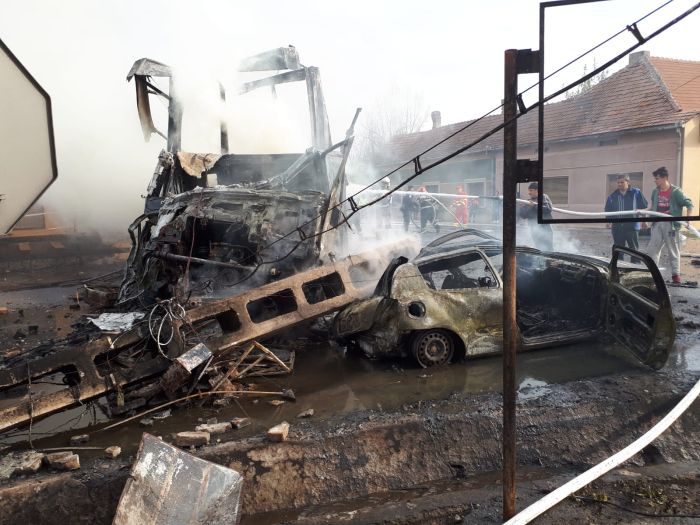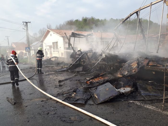 A fost blocata circulatia pe DN6, dupa ce un TIR a fost cuprins de flacari. Focul s-a extins rapid si la o masina, precum si la o constructie din apropiere.