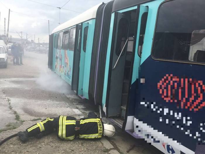 Unul dintre tramvaiele care circula pe linia 1, si care trecea pe strada Avram Imbroane catre Gara de Est, nu a mai ajuns sa ia pasageri. De sub unul dintre vagoane a inceput sa iasa un fum dens, astfel ca vatmanul a oprit tramvaiul. Au fost chemati imediat pompierii, care au venit cu o singura masina si au oprit extinderea incendiului.
