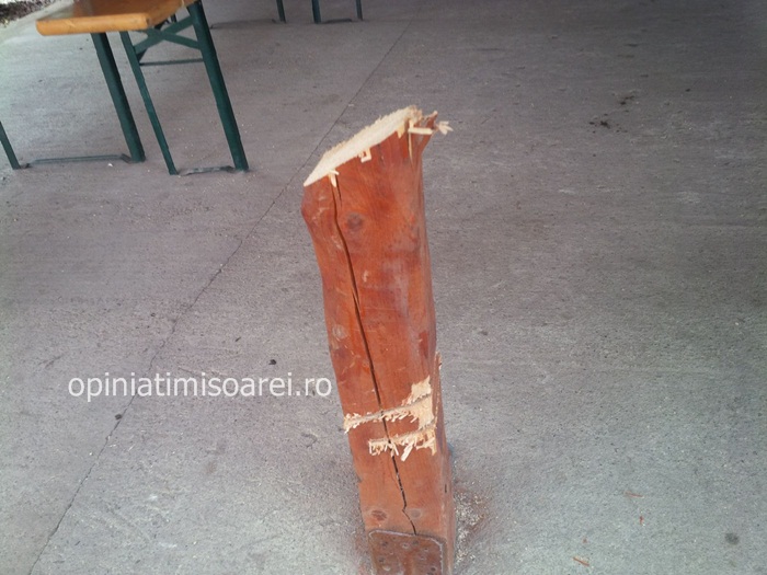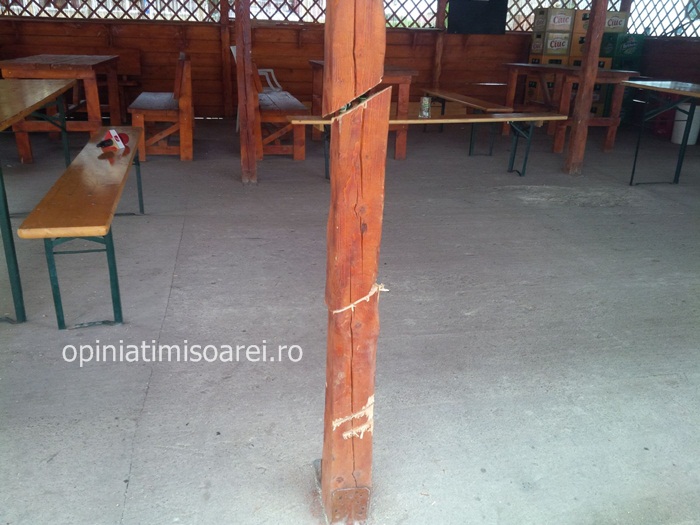 TIMIS. Roti de masina taiate cu cutitul, gratare doborate cu parul, stalp de sustinere al unei terase retezat cu drujba! Momente teribile intr-un bar din localitatea Lenauheim, aflata la 60 km de Timisoara.