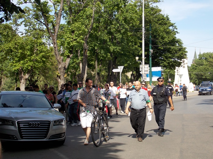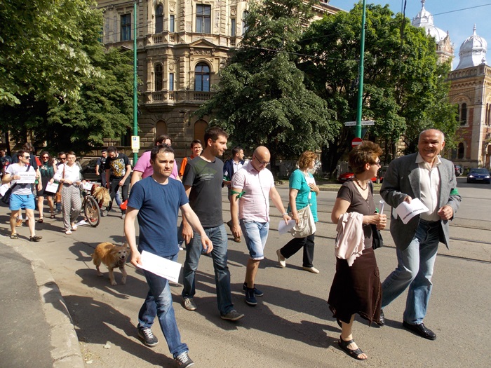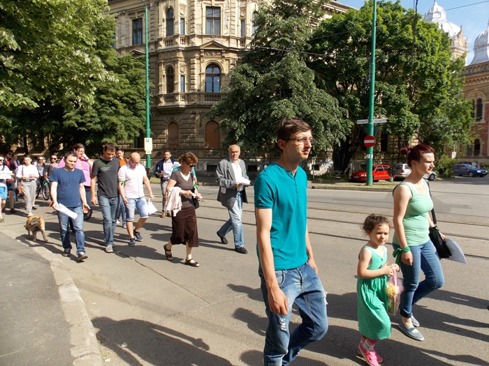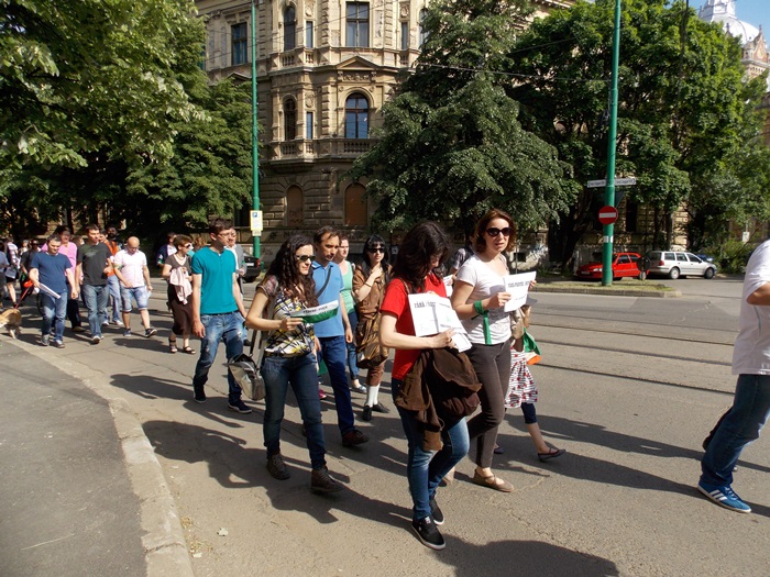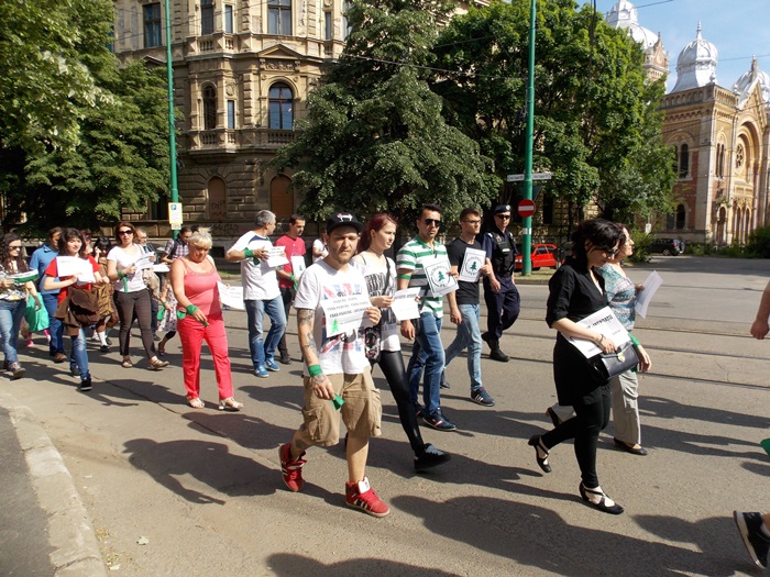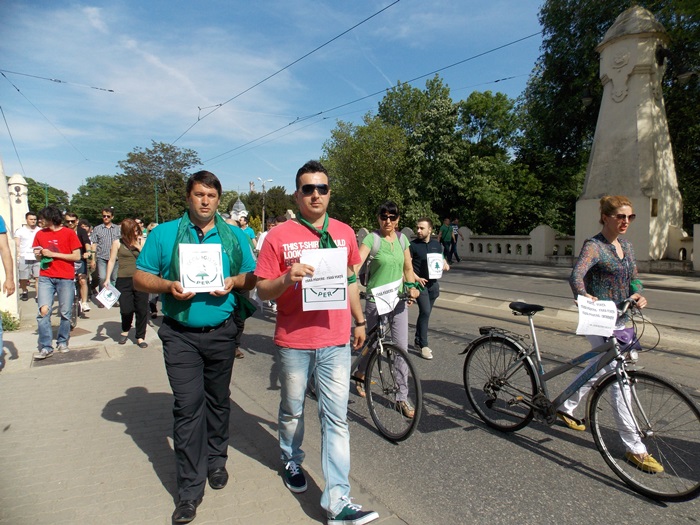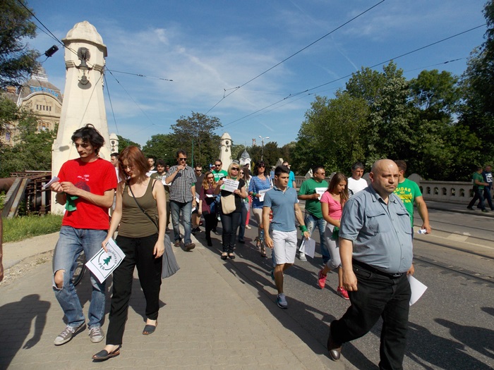 La un moment dat, acestia au decis sa porneasca intr-un mars spre Prefectura Timis, acolo unde se adunasera si protestatarii care si-au dat initial intalnire in Piata Traian. Potrivit jandarmilor, 70 de timisoreni au marsaluit din Piata Traian pana la Prefectura Timis, la apelul PER, cu pancarte ce transmiteau diverse mesaje: “Partidul Ecologist Roman”, “Padurea = viata”, “Fara padure = fara viata” sau “Fara padure = inundatii” ori “Salvam Padurea”.