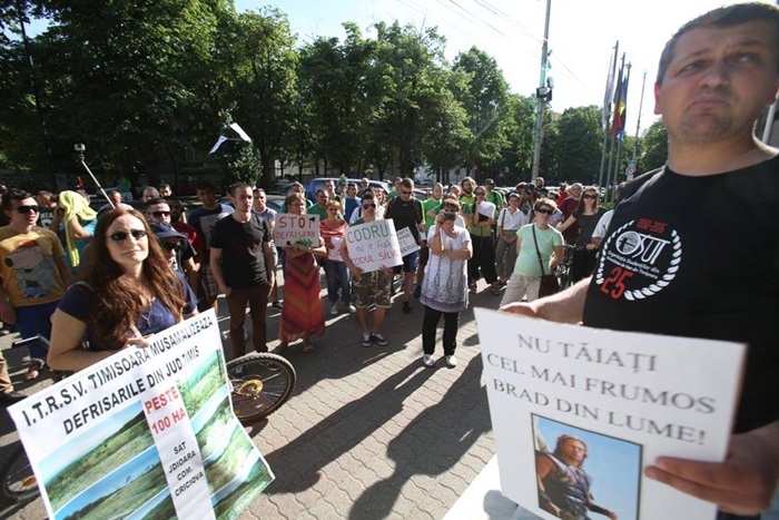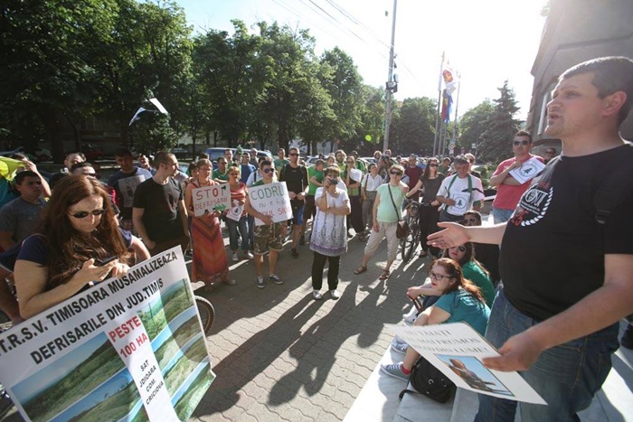 TIMISOARA. Noi proteste la Timisoara, de data aceasta fata de defrisarile ilegale din Romania. Desi in strada erau asteptate cateva sute de persoane, nici macar 200 de oameni nu s-au adunat pentru a trage un semnal de alarma cu privire la taierile ilegale de arbori din padurile tarii.