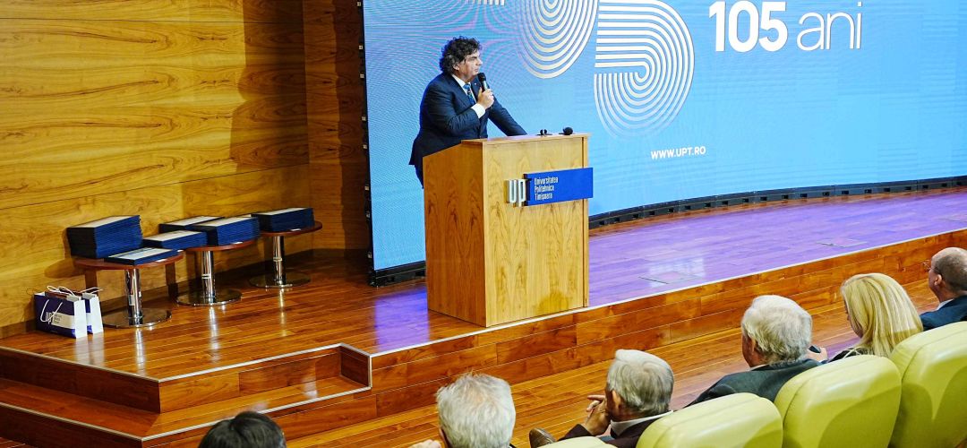 Vicepreședintele Consiliul Județean Timiș, Alexandru Adrian Iovescu, a mulțumit pentru onoarea de a fi parte la acest moment aniversar, subliniind că UPT a fost și va rămâne un pilon esențial pentru dezvoltarea orașului și a regiunii. „Viziunile comune privind construirea identității Timișului au dus, de-a lungul anilor, la numeroase proiecte comune de dezvoltare. Urez Politehnicii mulți ani în care să continue să formeze specialiști și să inspire întreaga comunitate”, a transmis reprezentantul CJT.