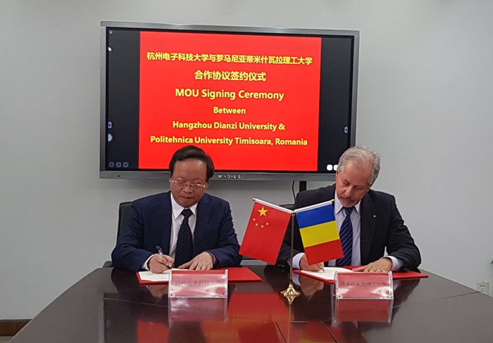 La sediul Universitatii Dianzi din Hangzhou, delegatia romana a fost intampinata de presedintele Consiliului Universitatii, Wang Xingjie, rectorul Zhu Zefei si prorectorul Zheng Ning, iar un acord de cooperare bilaterala a fost semnat de prof.univ.dr.ing. Marius Otesteanu, din partea UPT, si Zhu Zefei, din partea HDU, intr-un cadru festiv, in care a fost subliniata traditionala prietenie chino-romana si speranta ca relatiile de colaborare dintre universitati sa se dezvolte, cu rezultate fructuoase pentru ambele parti.