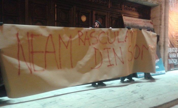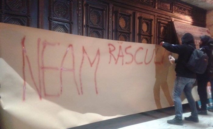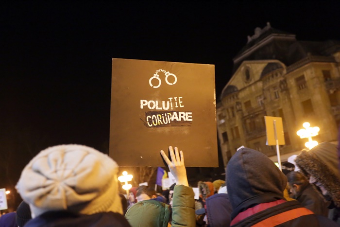 Cei prezenti au purtat pancarte pe care au scris mesaje precum „Spunem NU gratierii”, „Coruptia ucide, dar si saracia ucide”, „CNA fa-ti datoria”, „Grindene cu trupa ta faci de ras Timisoara”.