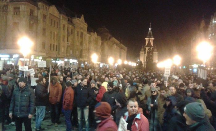 UPDATE 2: Numarul timisorenilor care se afla in Piata Victoriei continua sa creasca, si dupa miezul noptii. Aproximativ 2000 de oamenii protesteaza fata de deciziile pe care Guvernul le-a luat marti seara si sunt hotarati sa nu se opreasca aici. Mai mult, timisorenii si-au dat intalnire miercuri, la ora 12, in fata Prefecturii judetului Timis.