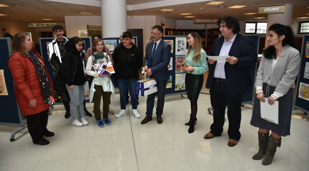 TIMISOARA. Holul central al Bibliotecii Universității Politehnica Timișoara s-a umplut miercuri, 23 noiembrie 2022, cu elevi, studenți, cadre didactice și absolvenți veniți la festivitatea de premiere celei de-a treia ediții a concursului de desen și fotografie „Politehnica prin ochii mei!” și la vernisajul expoziției realizate cu această ocazie, ce a reunit toate lucrările trimise.