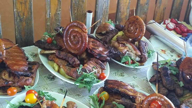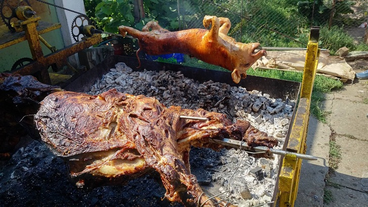 Pe mese au fost aduse bucate alese, nu foarte sofisticate asa cum se intampla pe la vilele bastanilor de pe CD Loga, iar la protap au fost pusi purcelusi de lapte.