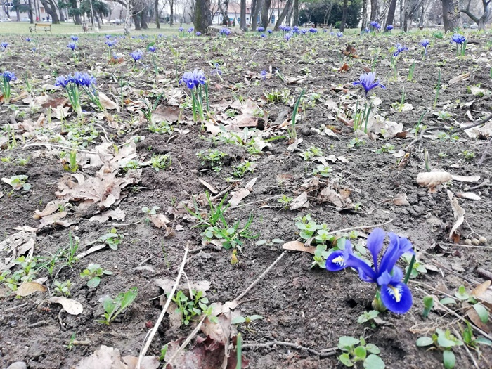 TIMISOARA. Au inflorit deja timid primii irisi timpurii in Parcul Justitiei din Timisoara, insa multi dintre ei au fost deja facuti una cu pamantul de soferii care obisnuiesc sa isi urce cu tupeu masinile pe straturile de la marginea spatiului verde din plin centrul orasului.