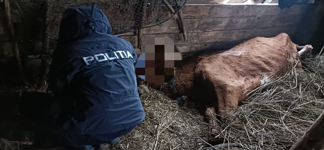 Oamenii legii erau in patrulare si au facut un control intr-un grajd, unde au gasit 4 vaci, dintre care doua erau moarte, iar cadavrele in stare avansata de putrefactie,