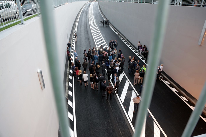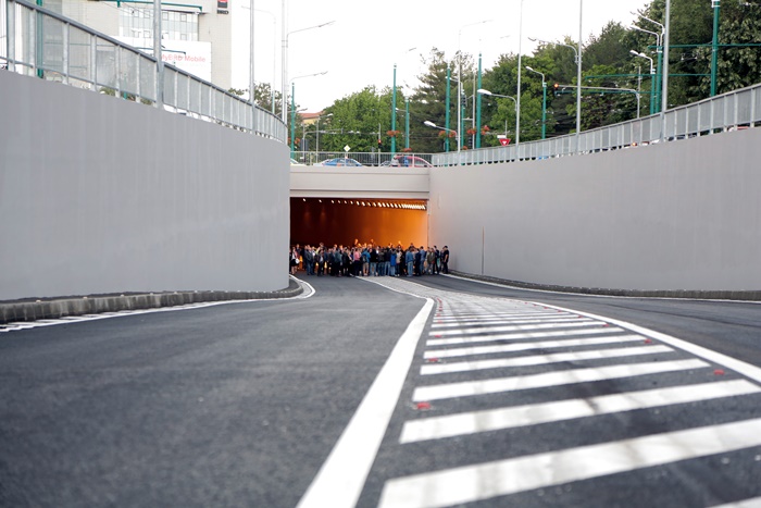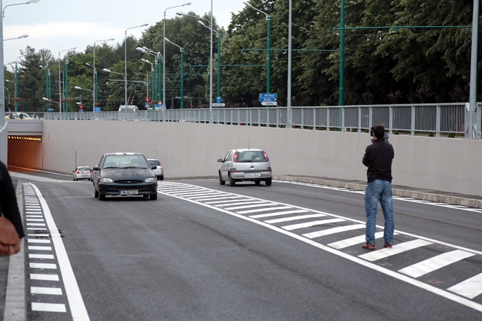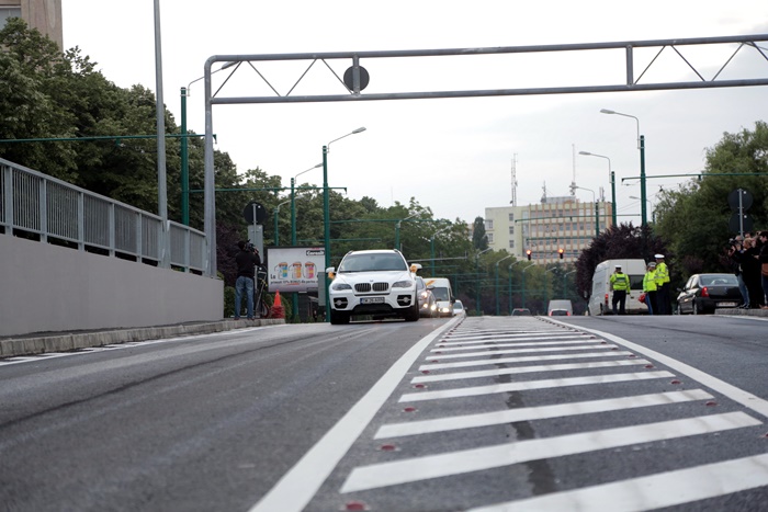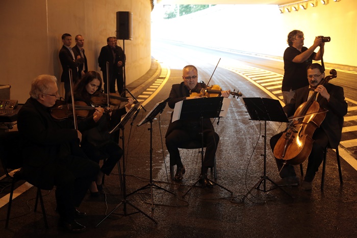 TIMISOARA. Momentul mult asteptat de soferii din Timisoara a sosit! De joi seara, traficul rutier pe sub intersectia Michelangelo a fost deschis. In ritmuri muzicale, aceasta, deoarece un cvartet de instrumentisti a fost adus pentru ceremonia de inaugurare.