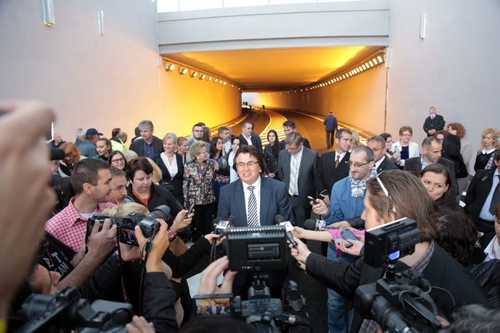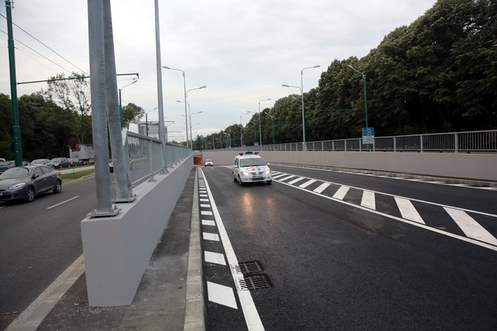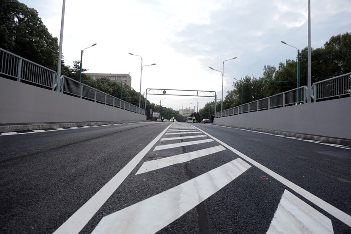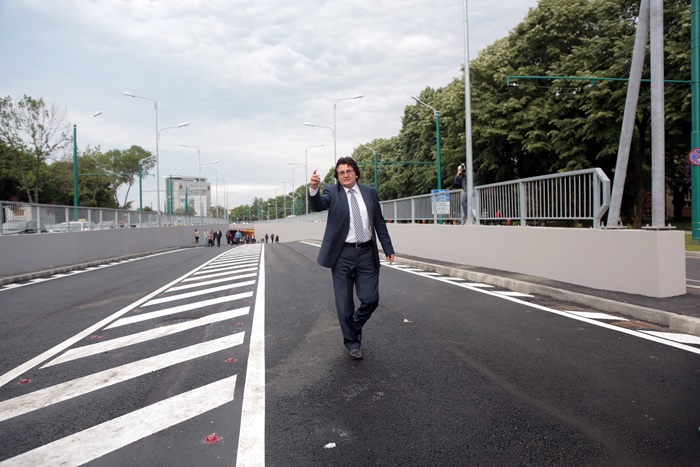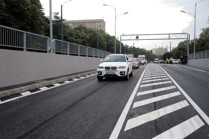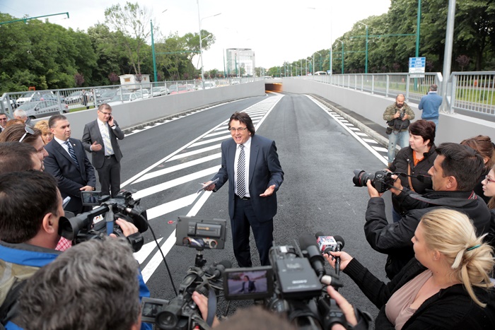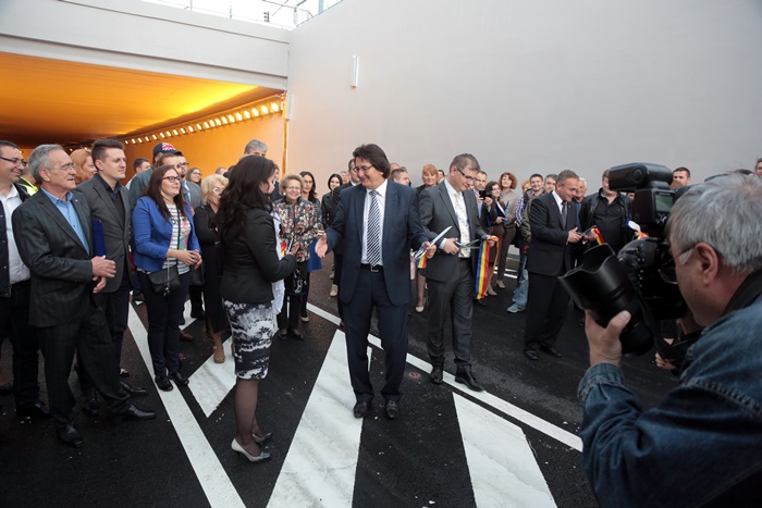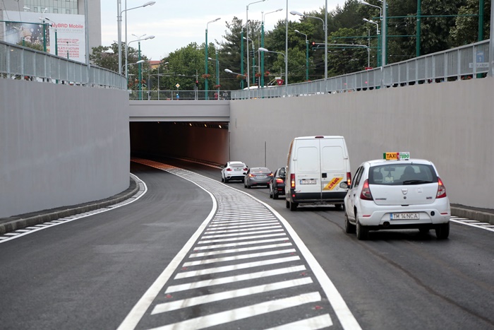 ”Am reusit sa finalizam acest proiect foarte important. Lucrarea a fost una complexa care a avut mai multe componente. Sa nu uitam ca dincolo de realizarea pasajului a fost reabilitat podul Michelangelo, au fost schimbate 9 retele de utilitati la nivel de magistrala, ca la suprafata s-a redefinit intersectia s-a facut mult mai aspectuoasa si mai functionala decat era inainte si ca partea cea mai grea a fost realizarea pasajului . Acesta re 455 metri lungime si cu partea acoperita de circa 125 de metri. Termenul de finalizare al acestei lucrari a fost 29 mai 2015. Veti vedea din datele cifrice ca durata de executie a fost de 14 luni. Evident ca au fost perioada in care nu s-a putut lucra si au fost ordine de intrerupere a lucrarilor, datorita conditiilor meteo. Si reprogramandu-se teremnul si tinaid seama de aceste perioada in care nu s-a putut lucra, teremnul final era 29 mai 2015. Am avut parte si de o iarna serioasa, drept urmare din toate punctele de vedere putem sa ne laudam cu performante aici. S-a lucrat superb la spatiile verzi din zona. Au fost plantati arbori 70 de bucati, arbusti 130 de bucati, s-au amenajat zone verzi, au fost montate cosuri de gunoi. Eu cred ca ne putem mandri cu aceasta lucrare”, a spus Robu.