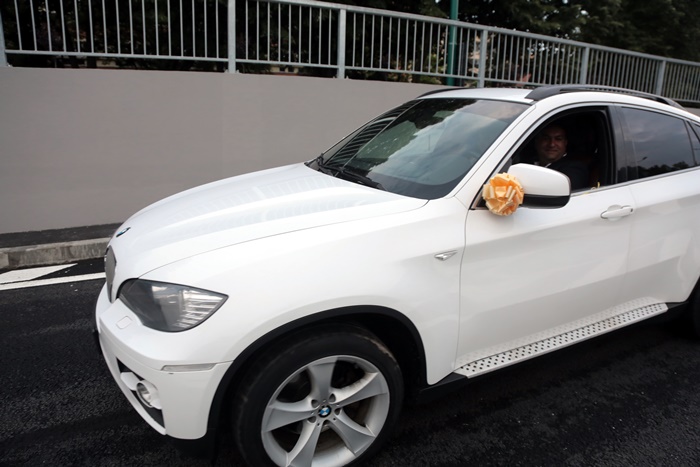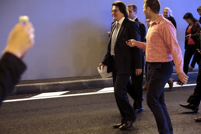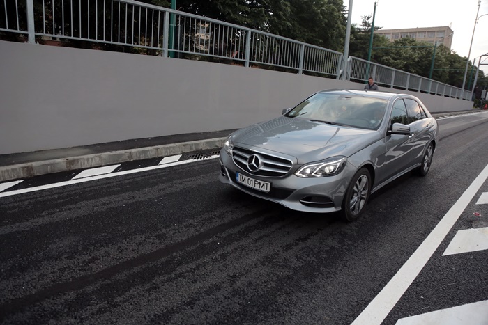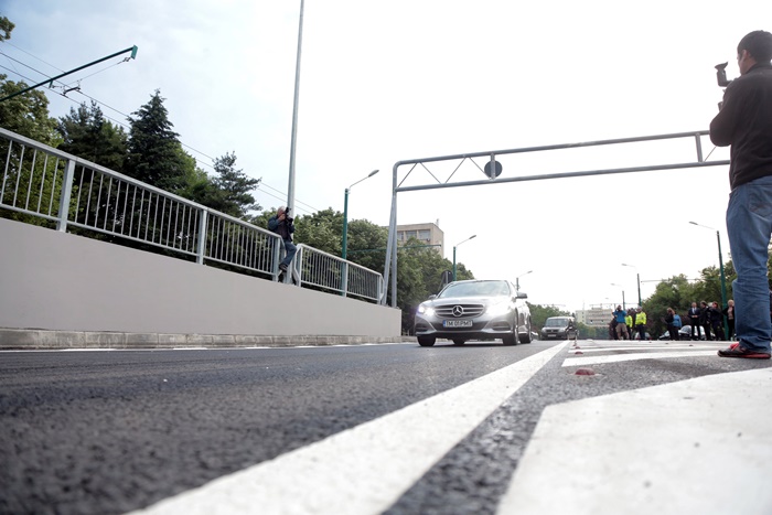Odata incheiata ceremonia de inaugurare, primarul Nicolae Robu s-a urcat la volan pentru a testa asfaltul din pasaj.