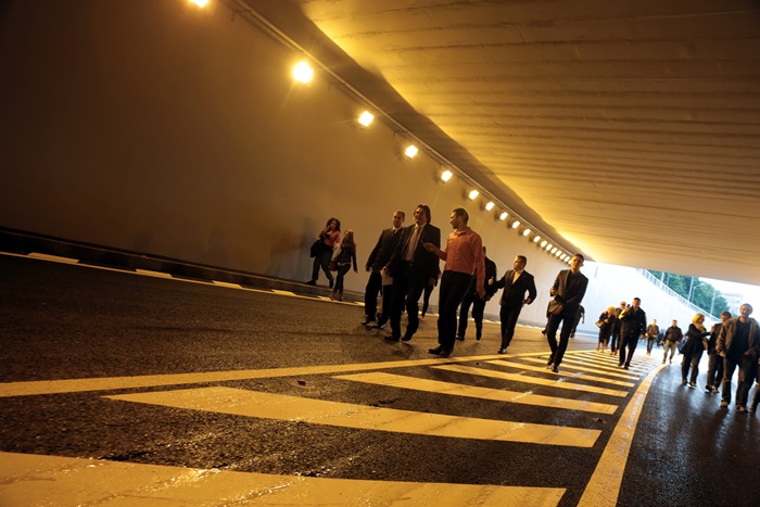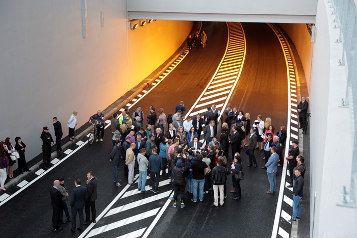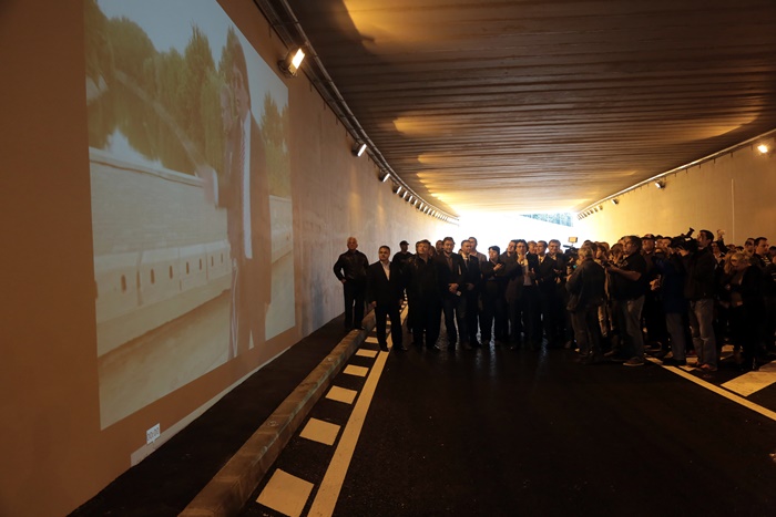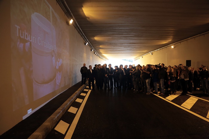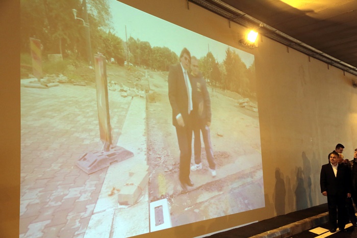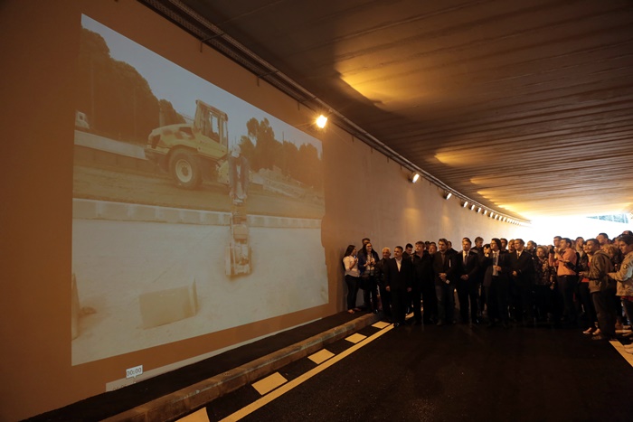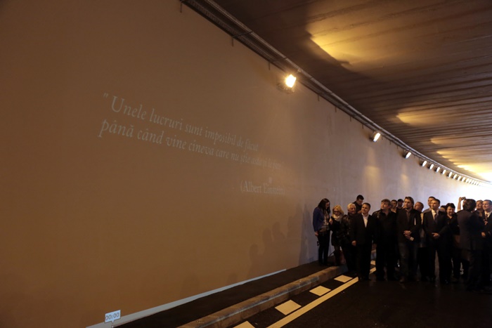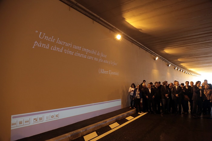 Mai mult, pe peretii pasajului au fost proiectate fotografii si imagini din timpul lucrarilor, in toate fazele constructiei.