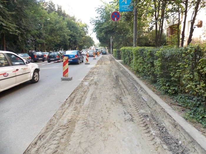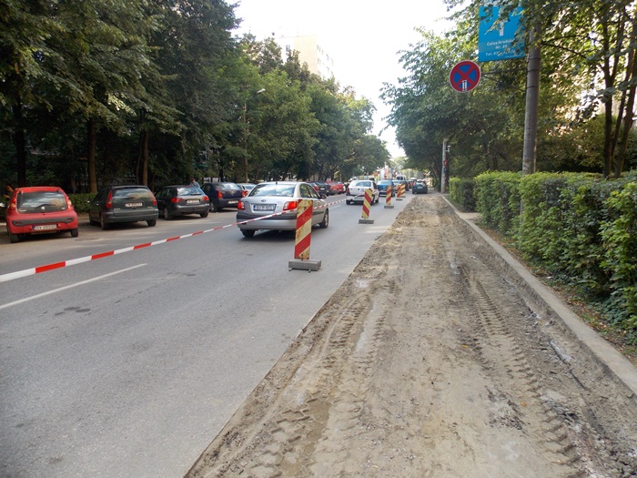 TIMISOARA. Parcare pe o parte a strazii, un trotuar mai mic pe cealalta parte, si mai mult spatiu de circulatie pentru masini. Asa arata planul Primariei pentru Aleea Ripensia, strada unde deja au inceput lucrarile de refacere, chiar necesare pe o buna portiune a sa.