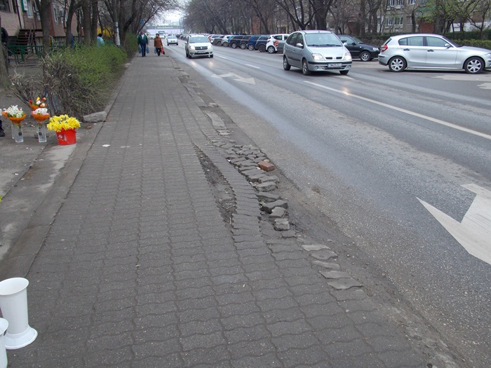 Trotuarul de pe fosta Alee a Sportivilor avea oricum nevoie de reparatii, mai ales in apropiere de intersectia cu strada 1 Decembrie 1918, unde, din cauza masinilor care au parcat de-a lungul vremii in zona sau a celor care opreau ocazional sa cumpere cate ceva de la vanzatorii de flori, pietrele au fost desprinse din trotuar.