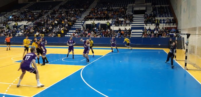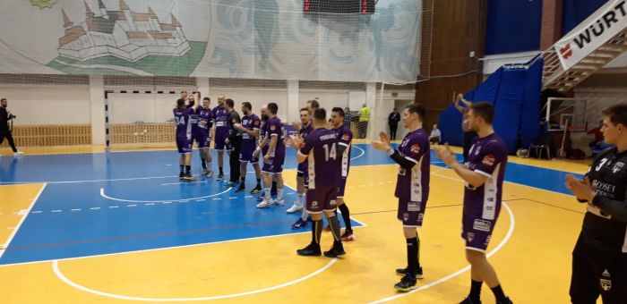 Fagarasul a trecut pentru prima si singura data in avantaj in minutul 32, 14-13 si a tinut mult timp in suspans echipa gazda. Violetii au negociat excelent finalul de joc si s-au desprins spre bucuria unei sali extrem de calde, 26-21 scor final. Filip Marjanovic a fost cel mai bun jucator de pe teren, extrema stanga a echipei marcand 10 goluri.
