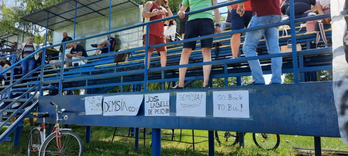Multi fani i-au cerut insa demisia lui Vali Calafeteanu, aratandu-l cu degetul si pentru jucatorii care vor alege sa plece de la club. Antrenorul nu a avut chef de declaratii dupa joc, trimitandu-l sa vorbeasca pe secundul Stelian Burcea. Si managerul sportiv Danut Borzas este acuzat de fani pentru lucrurile negative ce se petrec la club, suporterii dedicandu-i si cateva bannere.