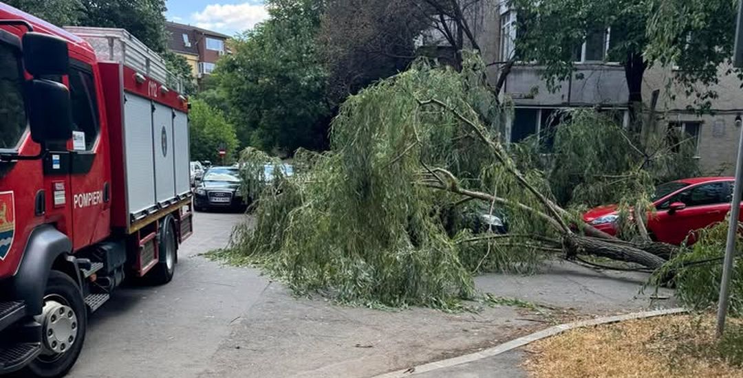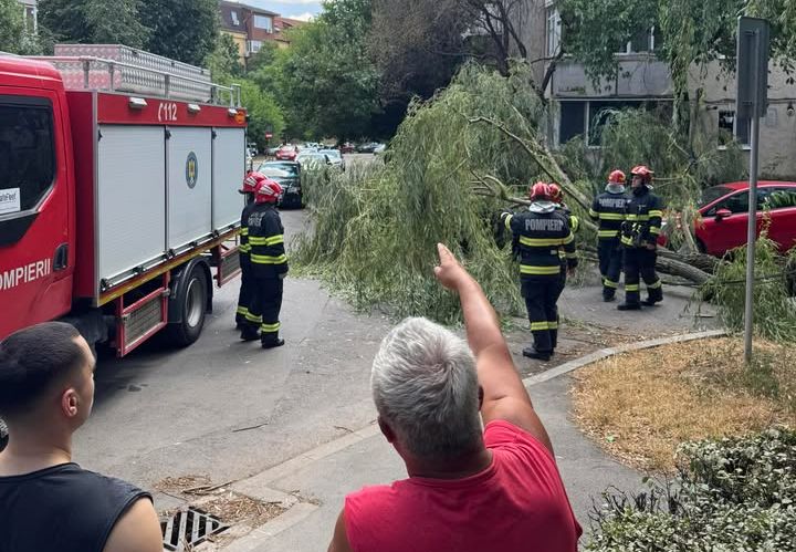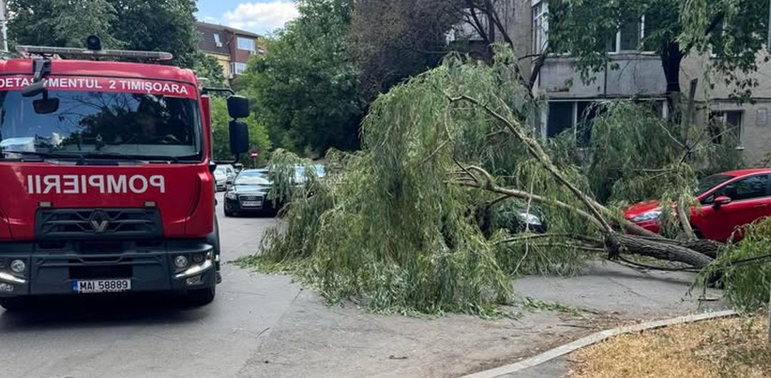 Mașinile erau într-o parcare din fața blocurilor de pe strada Arhitect Victor Vlad, din zona Steaua. Un s-a înclinat, s-a rupt din rădăcină și a căzut peste autoturismele parcate.
