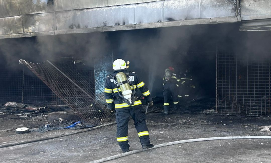 La fața locului au ajuns mai multe echipaje ale pompierilor. Au luat foc deșeuri menajere, iar flăcările s-au extins și în interiorul centrului comercial.