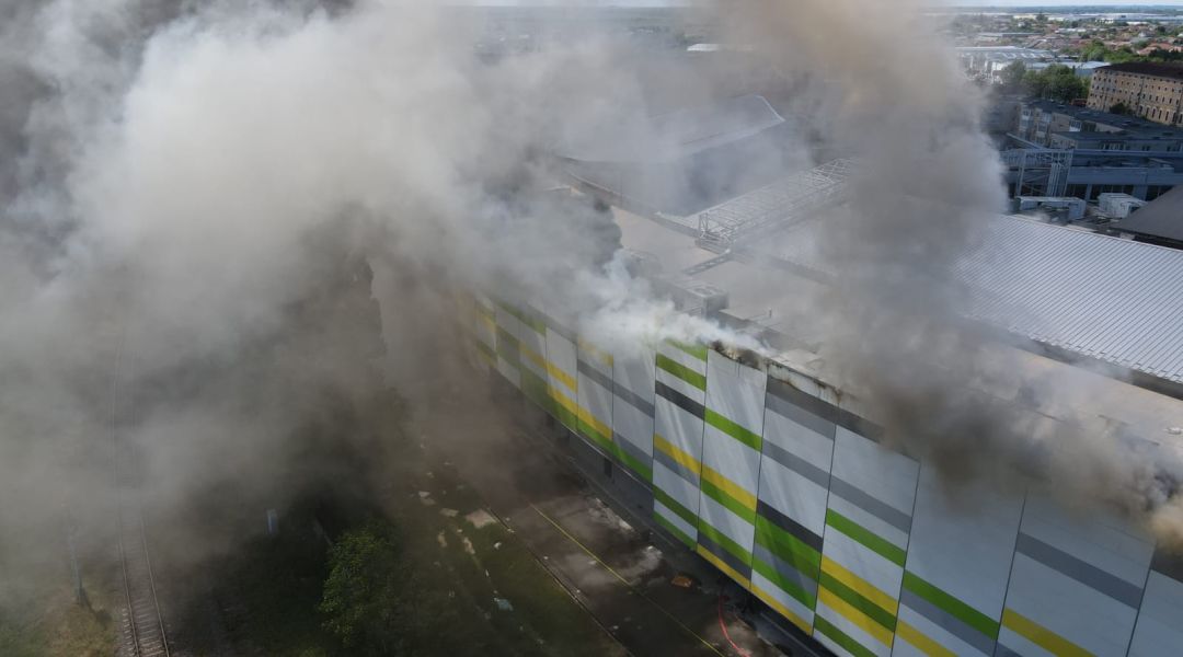 Flăcări înalte și o coloană de fum negru vizibilă de la zeci de kilometri. Un incendiu violent a cuprins deseuri din curtea mall-ului din Arad, sambata dupa-amiaza.