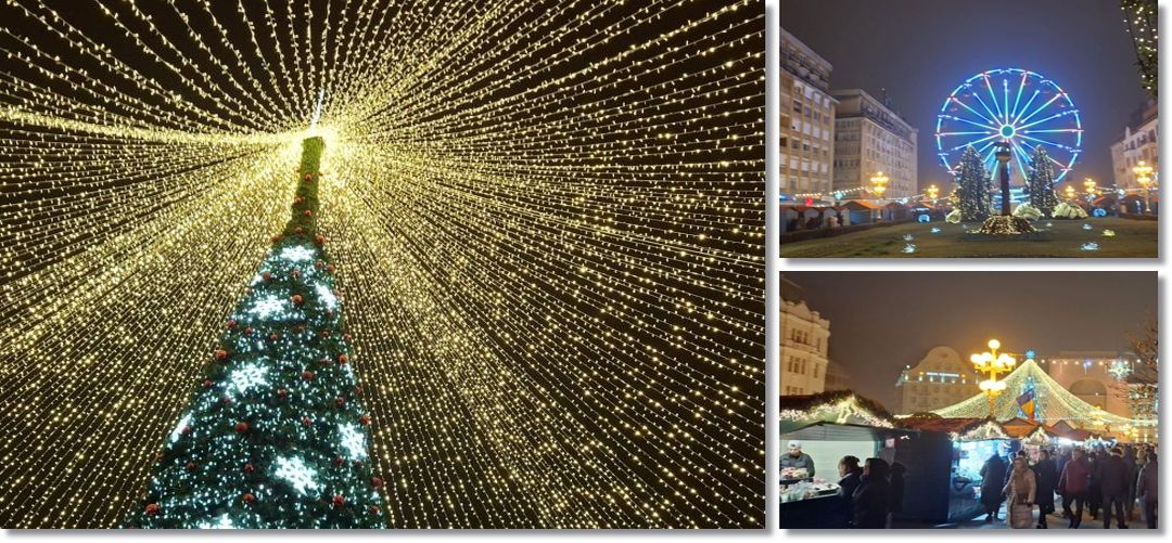 S-a deschis Târgul de Crăciun, mii de luminițe au fost aprinse, iar atmosfera e întreținută de Ștefan Bănică Jr. și orchestra.