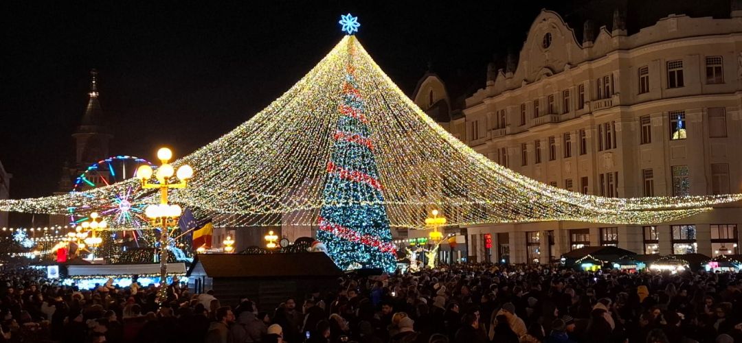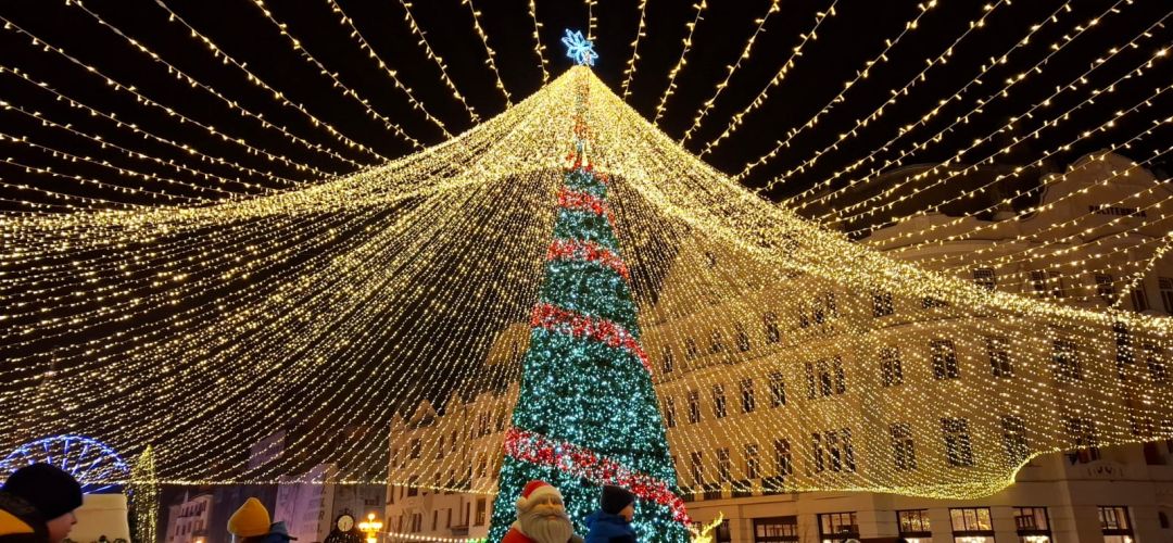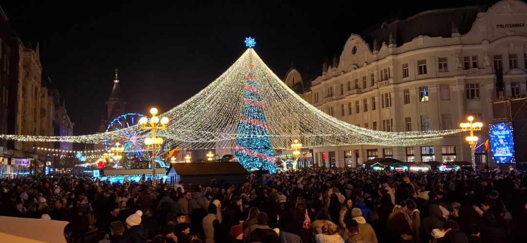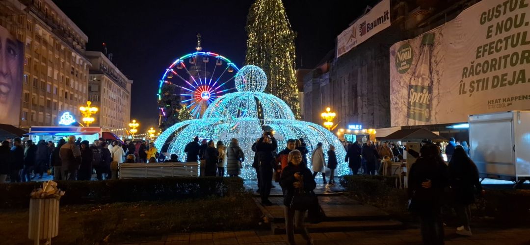 Cupola cu lumini, bradul, casutele cu bunatati, toate va asteapta in centrul Timisoarei pana in Ajun de Boboteaza.