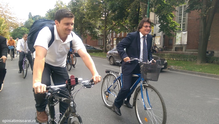 TIMISOARA. A lasat masina in parcare si s-a urcat pe bicicleta! Vorbim despre primarul Timisoarei, care a decis, miercuri, sa-si insoteasca o parte din angajati intr-o pedalare organizata prin oras, cu ocazia Saptamanii Mobilitatii Europene.
