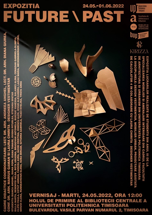 Expoziția prezintă lucrările realizate de studenții din anul III ai Facultății de Arhitectură și Urbanism din Universitatea Politehnica Timișoara, specializarea Mobilier și Amenajări Interioare, la disciplinele Design vestimentar, Mobilier urban si Proiectare asistată de calculator, în colaborare cu designerul vestimentar Laura Chiriță.